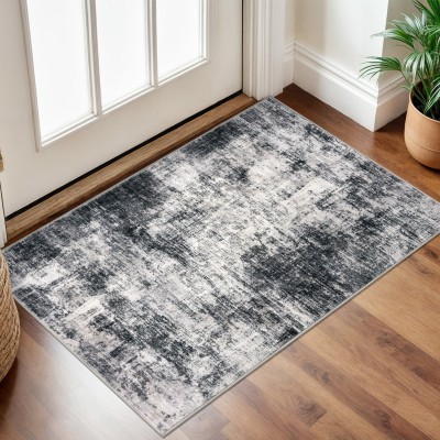 iOhouze Abstract Small Area Rugs 2x3 Washable Rugs Non Slip Throw Rug with Rubber Backing, Black/Grey/White
