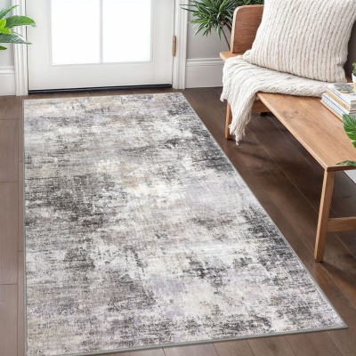 iOhouze 3x5 ft Throw Rugs with Rubber Backing Washable Abstract Area Rug Indoor Non Slip Kitchen Rugs, Ash Grey/Beige