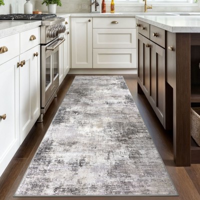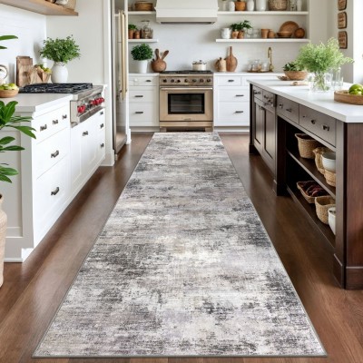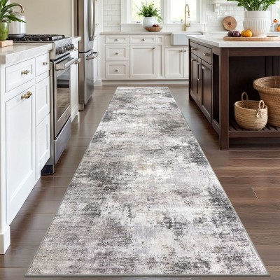 iOhouze Hallway Runner Rugs 2x10 Abstract Washable Runners Non Slip Kitchen Runner, Ash Grey/Beige