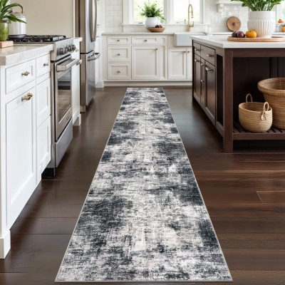 iOhouze Hallway Runner Rugs 2x12 Abstract Washable Runners Non Slip Kitchen Runner, Black/Grey/White