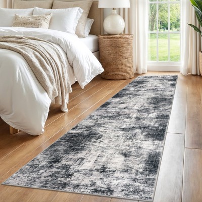 iOhouze Washable Runners 3x8 Abstract Runner Rug for Hallways, Ash Grey/Beige