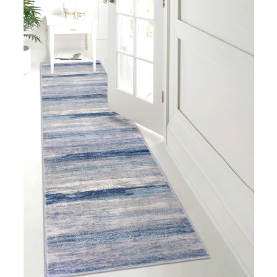iOhouze Abstract Runner Rug Blue 2x7 Washable Rug Runners Non Slip Kitchen Runner