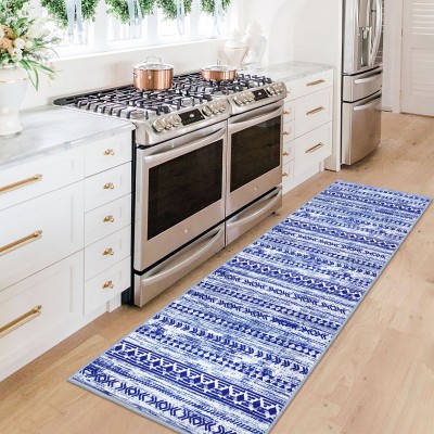 iOhouze Kitchen Runner Rug 2x12 Washable Rug Runner Non-Slip Soft Striped Hallway Runner Rugs, Grey Blue